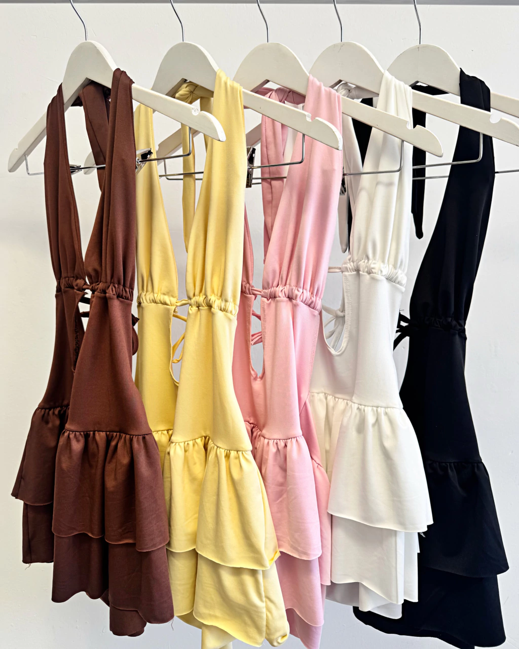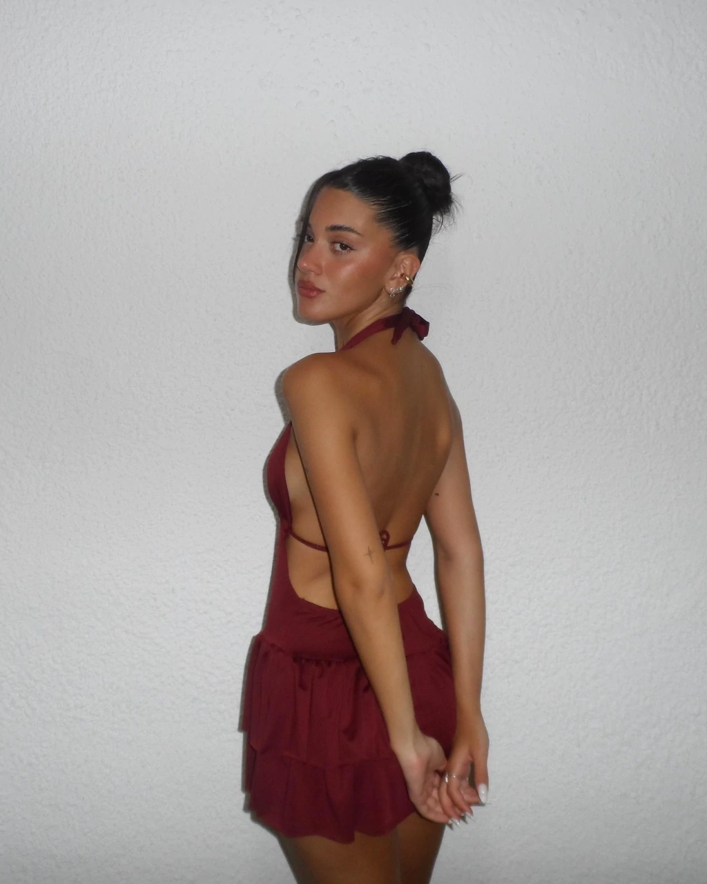 El vestido que dice todo sin decir nada. El Vestido Marilyn es pura actitud: micro, con tiras para atar y el equilibrio perfecto entre sensualidad y elegancia.