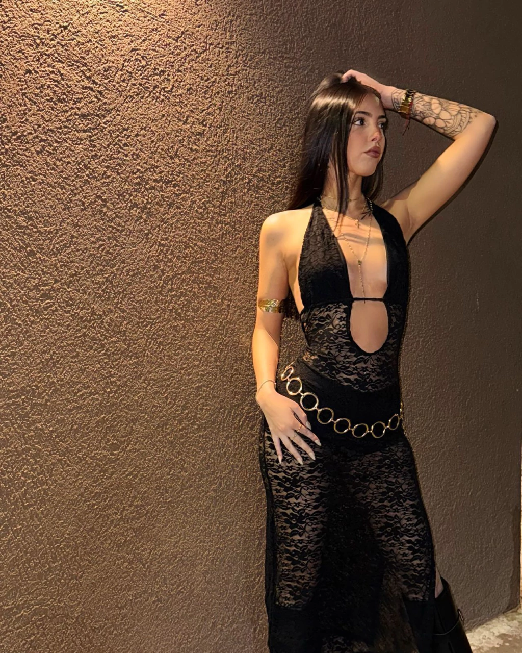 Vestido Moi: Elegancia & sesualidad en encaje largo.