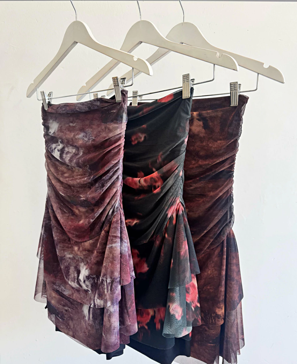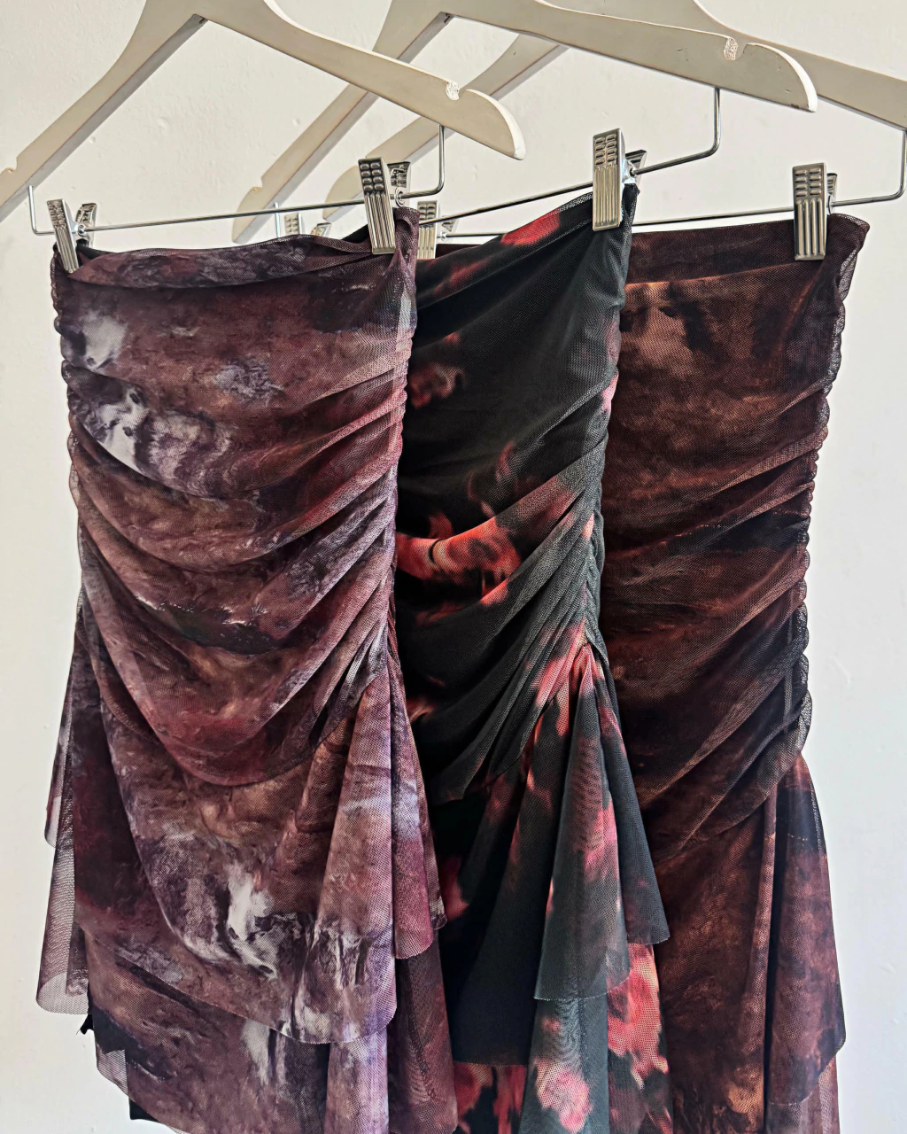 Disponible en talles 1 (S) y 2 (M), y en estampas únicas: choco, flores y violeta, ideales para cualquier ocasión.